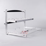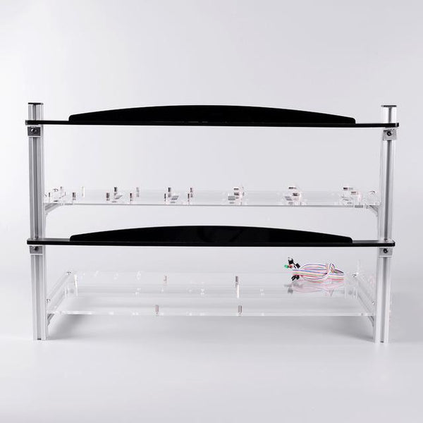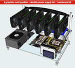 The chassis is aluminum structure with acrylic panels, use copper pillars to fixing the motherboard firmly. There are 7PCS of PCI fixed positions on below, and 6PCS of double location graphics card's fixed positions on above. Full-fixing, securely installed. Graphics cards' installation height can be adjusted, you can adjust the lower cooling space according to the length of the extension cord to improve the machine's overall cooling effect.